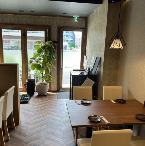 ランチタイムにもぴったりな店内は、明るくて開放感たっぷり!2名掛けや4名掛けのテーブル席で、ゆったりと食事が楽しめます。お子様連れでも安心の設備が整っていて、離乳食の無料サービスも嬉しいポイント。デートや女子会、家族でのランチにもおすすめです。気軽に立ち寄れる雰囲気で、毎日のランチがちょっと特別に♪