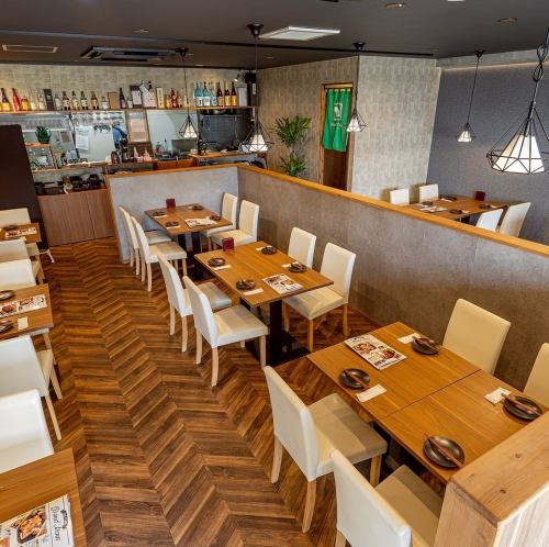 落ち着いた雰囲気が自慢の当店は2名掛けのテーブル席が2つと4名掛けのテーブル席が9つをご用意しています!2名掛けのテーブル席では大切な人との記念日や恋人とのデート利用に最適です!また4名掛けは広々としたテーブル席となっているので快適にお過ごしいただけること間違いなしです♪
